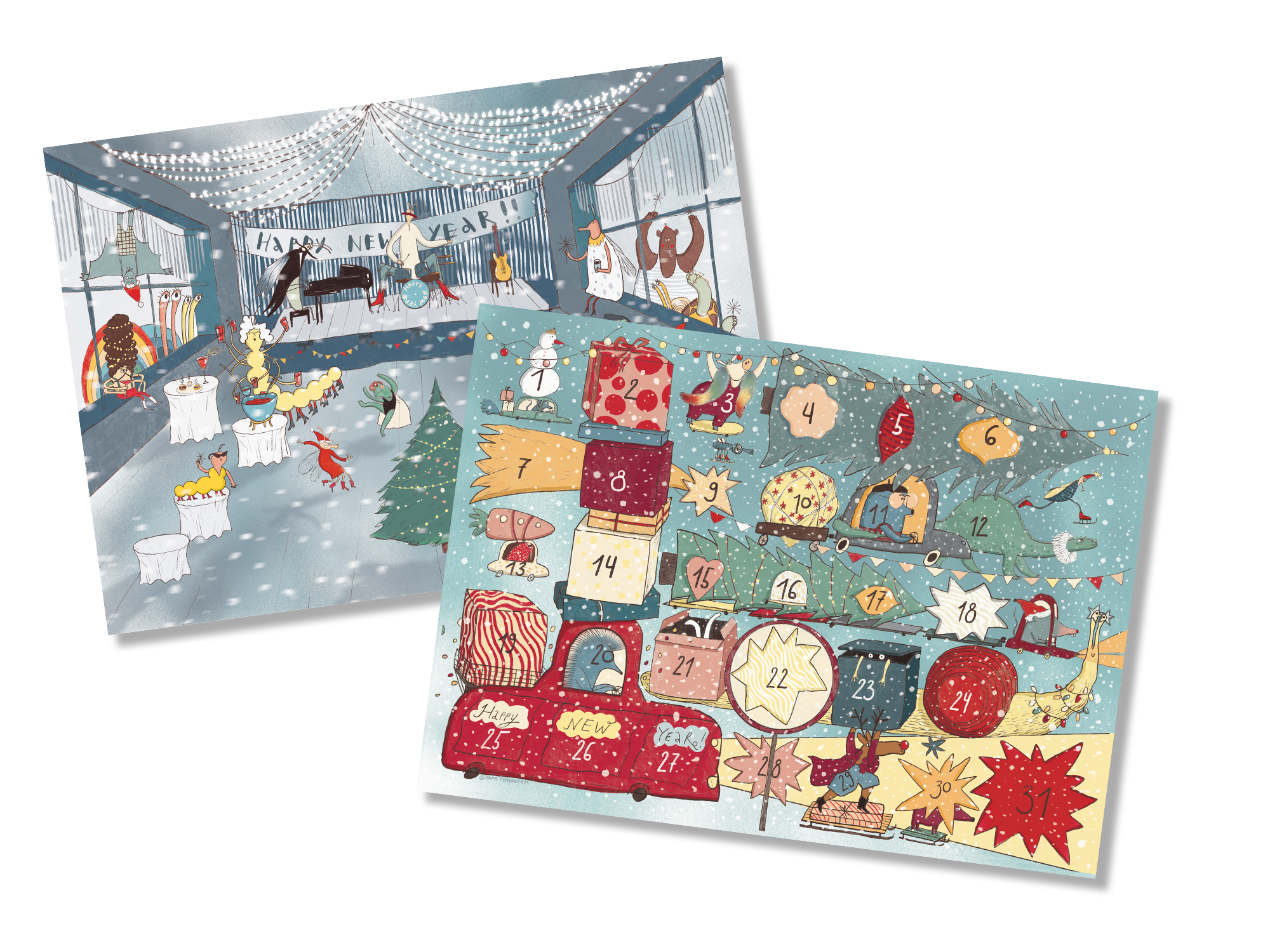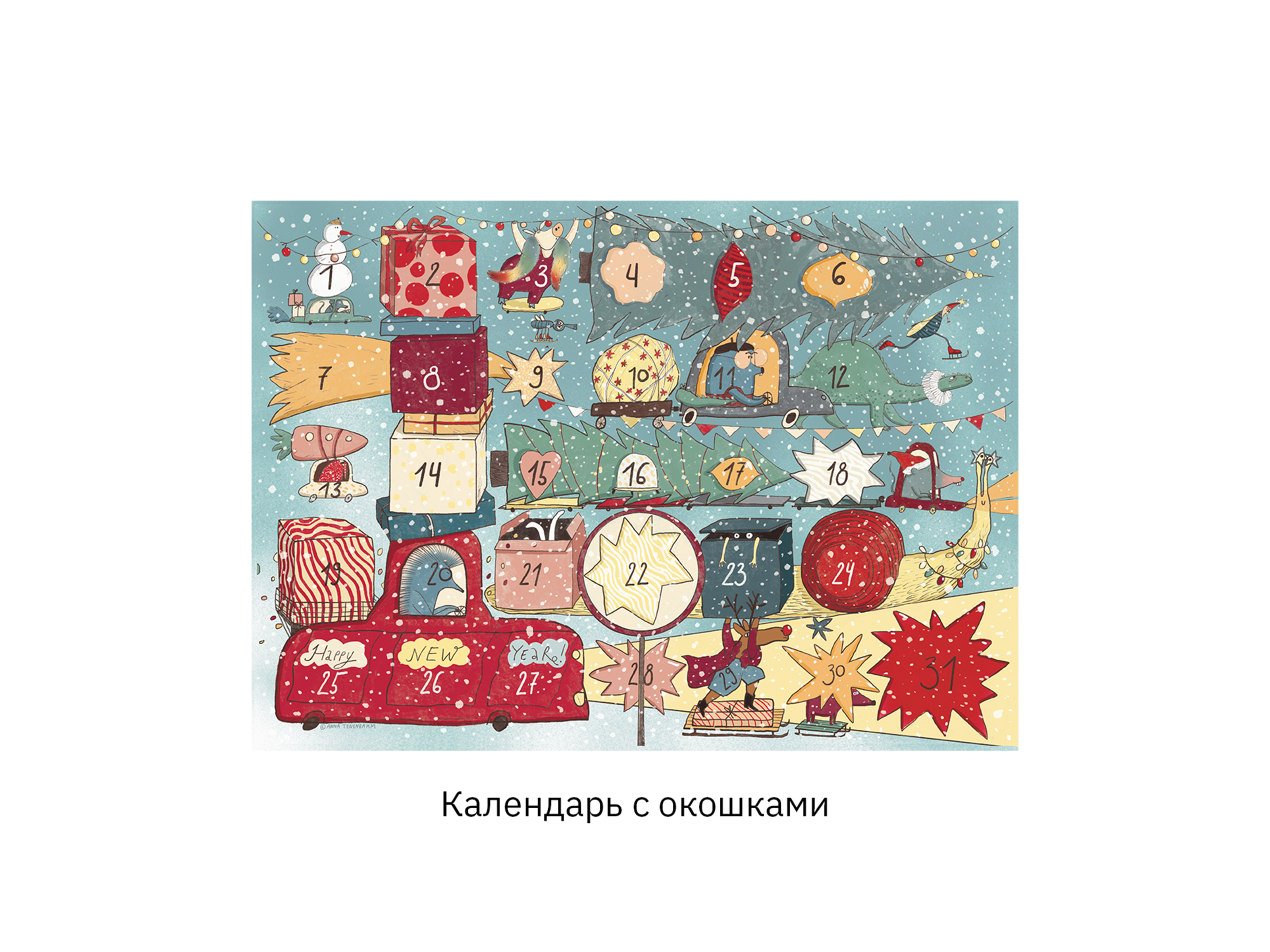 В этом календаре всевозможные букашки собираются закатить масштабную новогоднюю вечеринку! В окошках, которые надо открывать ежедневно, спрятались украшения для вечеринки, еда и напитки, подарки и конечно же гости, которые тоже хотят на этот незабываемый праздник.