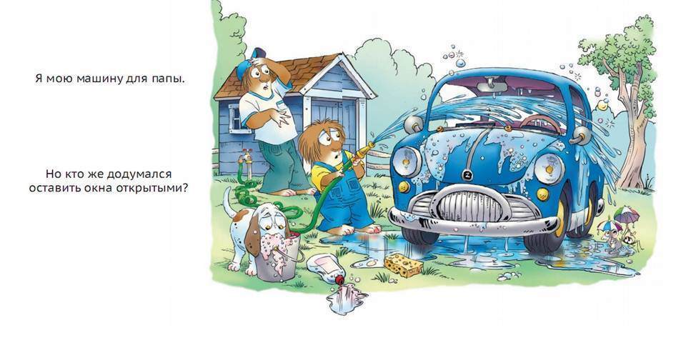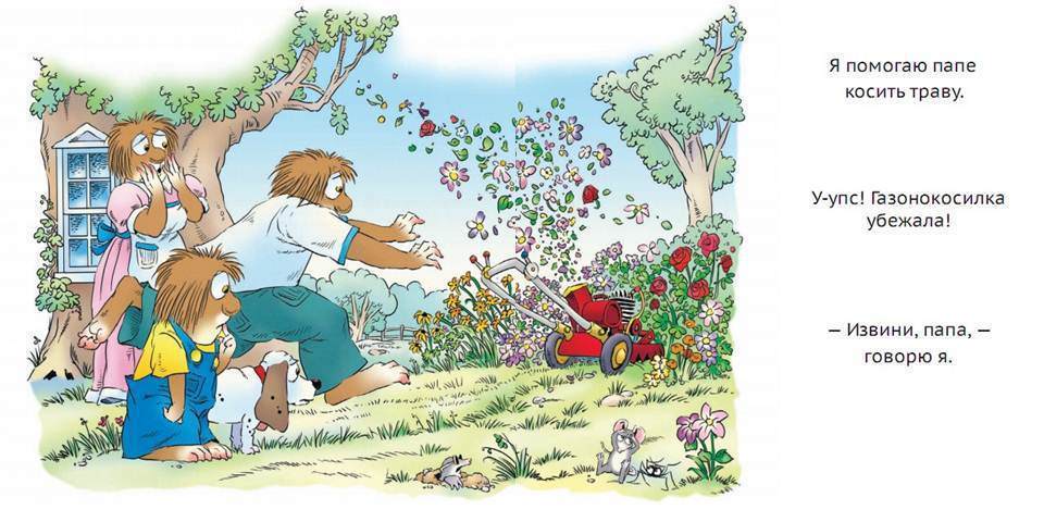Эта книжка о малыше, который внимательно наблюдает за всем, что происходит вокруг него, и уверен, что все взрослые папины дела ему по плечу. Он бросается готовить любимому папе завтрак, вызывается первым починить туалет, когда мама говорит, что он сломался, готов выбрать самый лучший молоток для папы и набрать полную тележку продуктов в супермаркете.