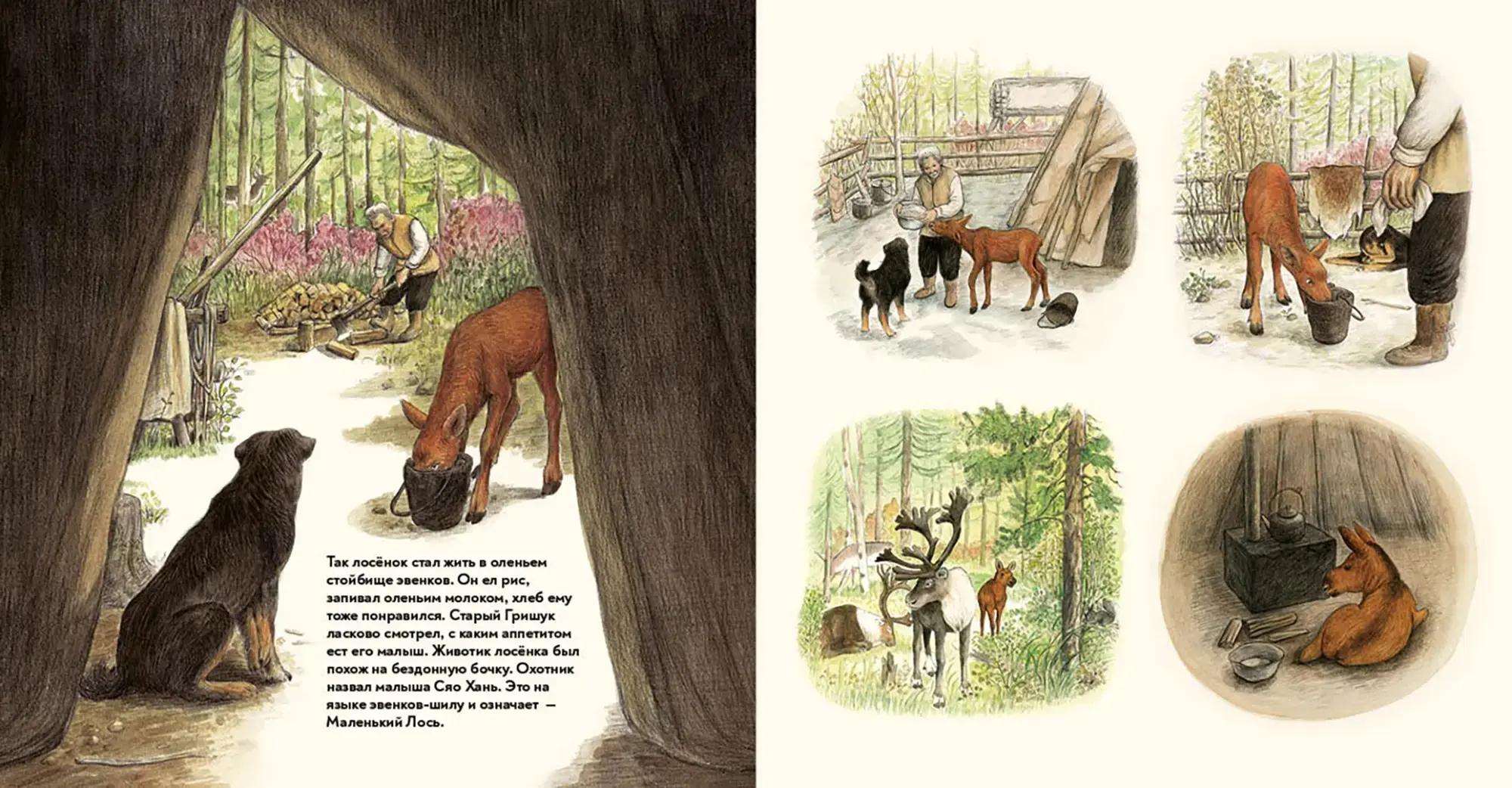Эта правдивая история началась с выстрела в таёжной чаще. А превратилась в прекрасную легенду об удивительной дружбе старого охотника и рыжего лосёнка, оставшегося без матери. Читатель вместе с героями книги окажется в горах на эвенкийском стойбище оленеводов, будет ночевать в чуме, на рассвете гулять по тайге, взрослеть и набираться сил, волноваться за друга, приходить на помощь, прогонять врагов, принимать нелёгкие решения и узнавать чудесный мир природы. Автор рассказывает об очень важных вещах: дружбе, доброте и настоящей крепкой привязанности, которая может стать сильнее природных инстинктов и даже сильнее смерти.