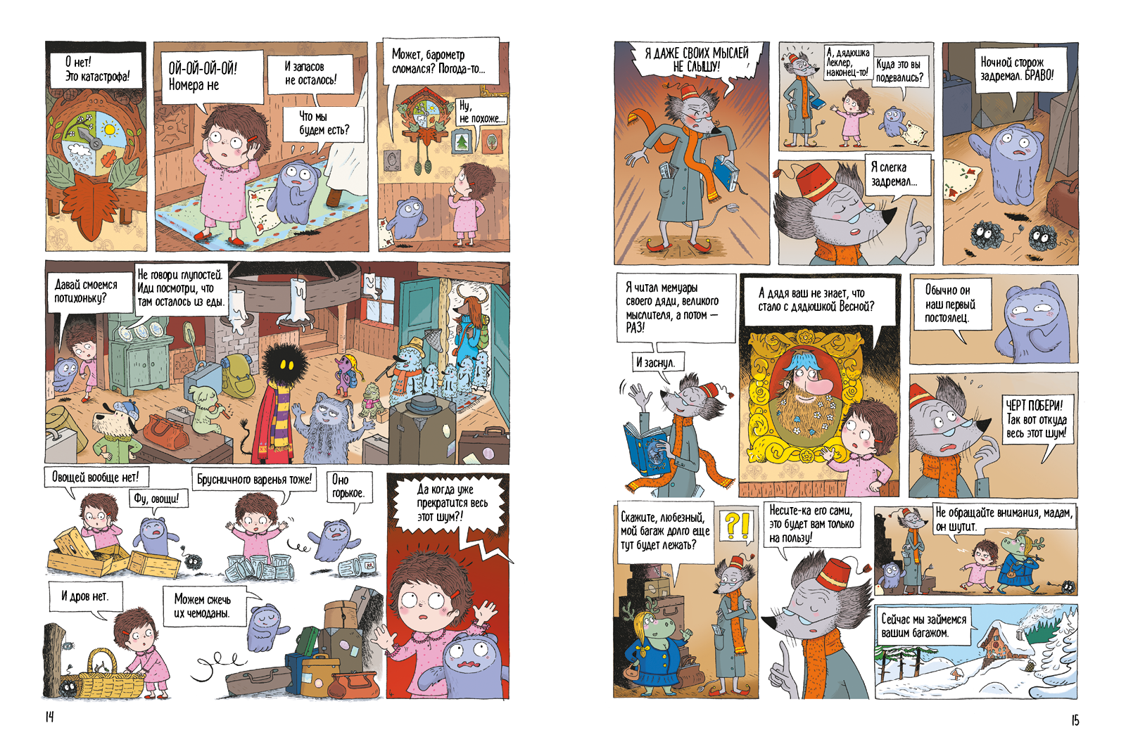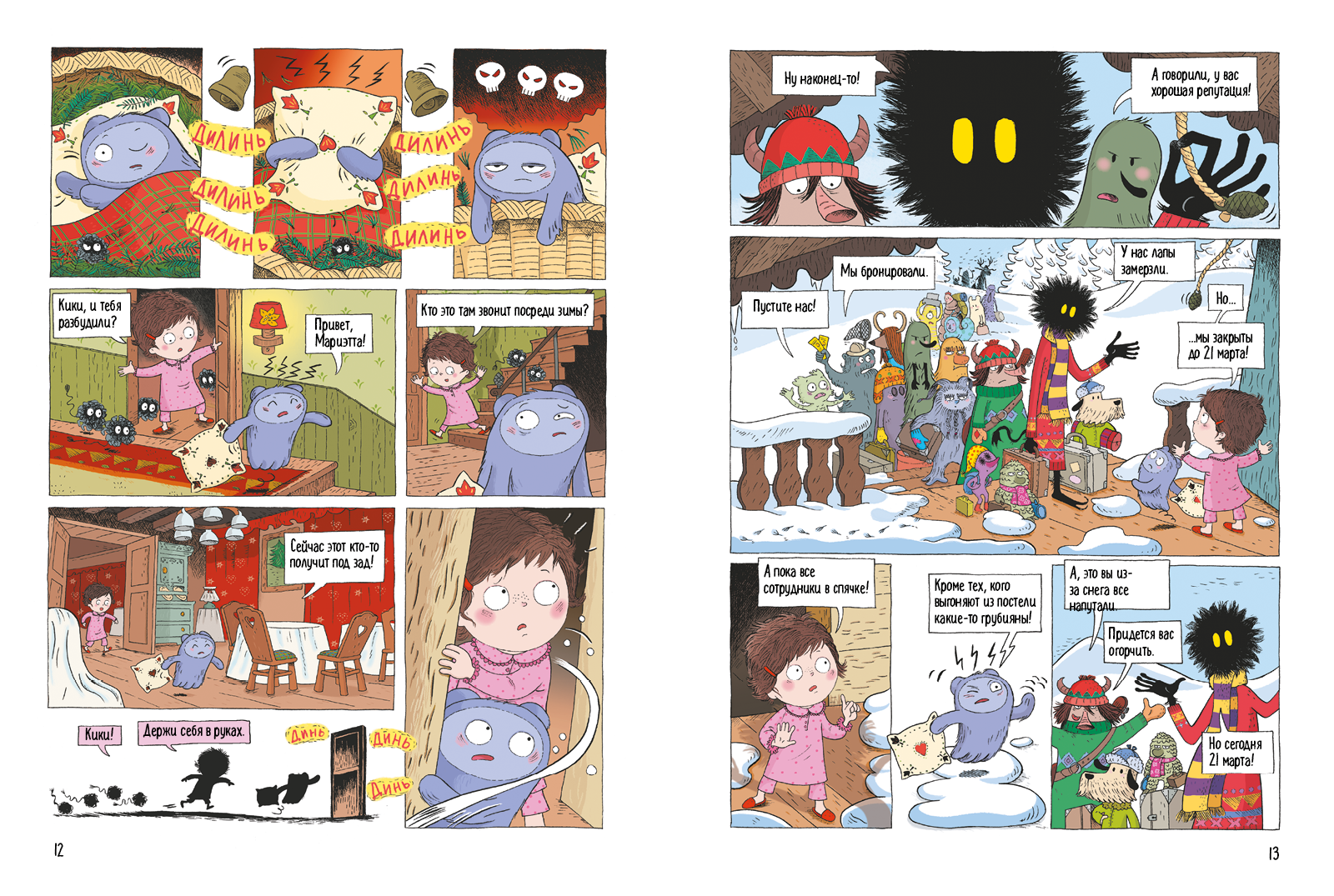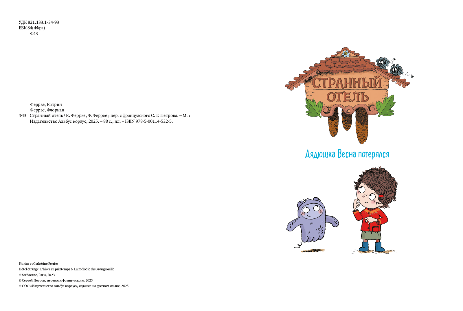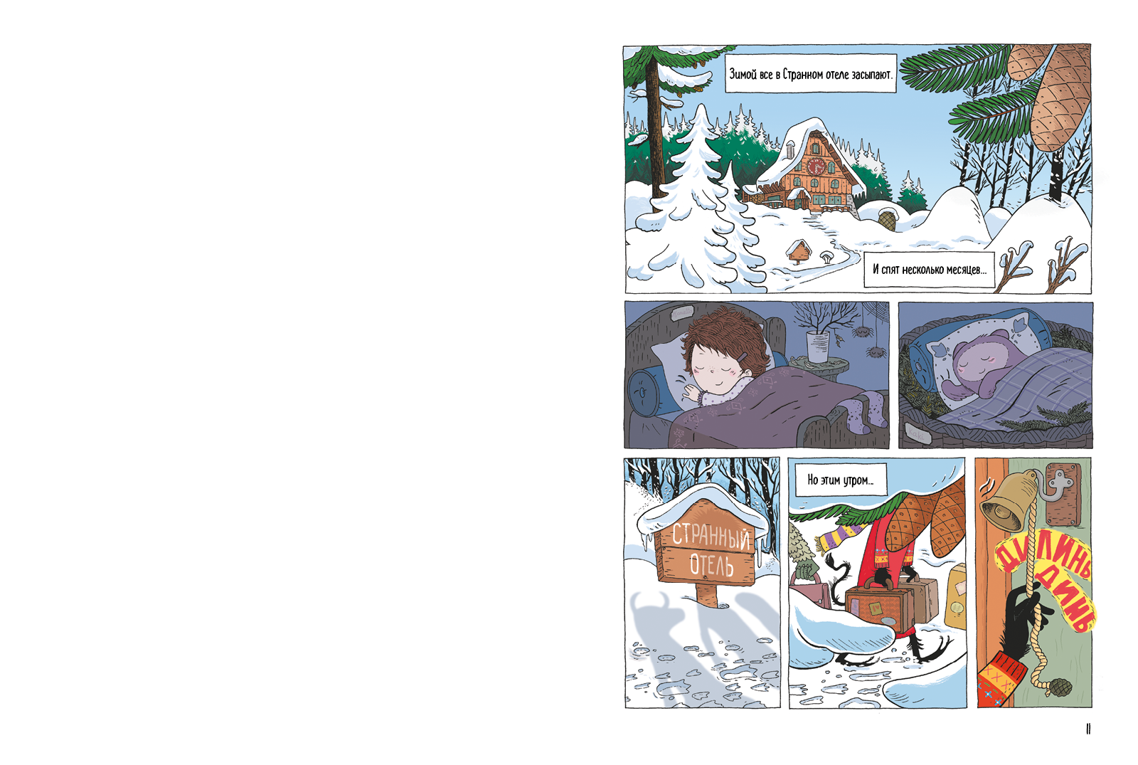 Странный отель — это обычный отель, только... немного странный. Управляют им бесстрашная девочка Мариэтта и симпатичные загадочные существа: безумный философ месье Леклер, привидение месье Снарф и маленький беспокойный монстр по имени Кики. А на страницах книги встречаются тревожники, кровососы, ворчуны и Большой Бурч. Мариэтте и компании нужно разыскать куда-то запропастившегося дядюшку Весну, потому что иначе зима не закончится, и она отправляется на поиски огромного сапфира, который был похищен у разбойников.