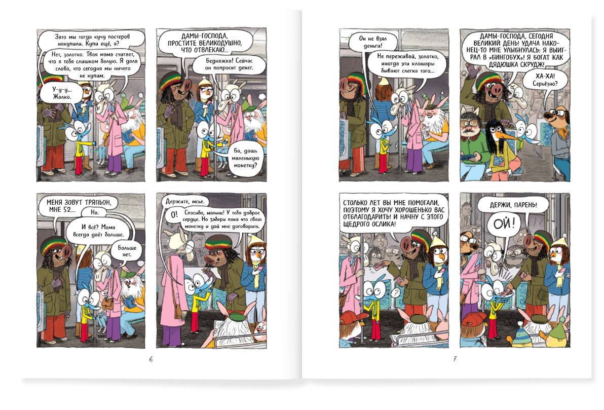 Все сюда! КРЯКС настроил флейту и сейчас нам сыграет! Этот хваткий утёнок не может без музыки и никогда не расстаётся с наушниками. АРИОЛЬ тоже хотел бы научиться играть на каком-нибудь инструменте, но ему не хватает усидчивости. Ну а РАМОНО… Нет-нет, он предпочитает блины с вареньем.