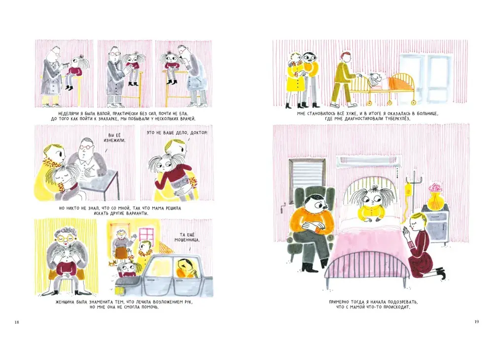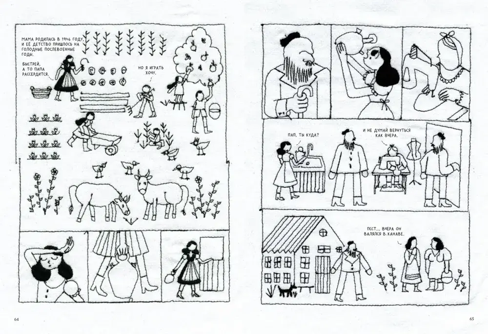 «Вышивая раны» — автобиографический комикс испанской художницы Беа Лемы о жизни с матерью, страдающей психическими расстройствами. Смешивая акварельные рисунки, вышивку и лоскутное шитьё, Беа рисует универсальную историю о женщине, выросшей в бедной, патриархальной религиозной семье, и маленькой девочке, которой пришлось повзрослеть слишком рано.