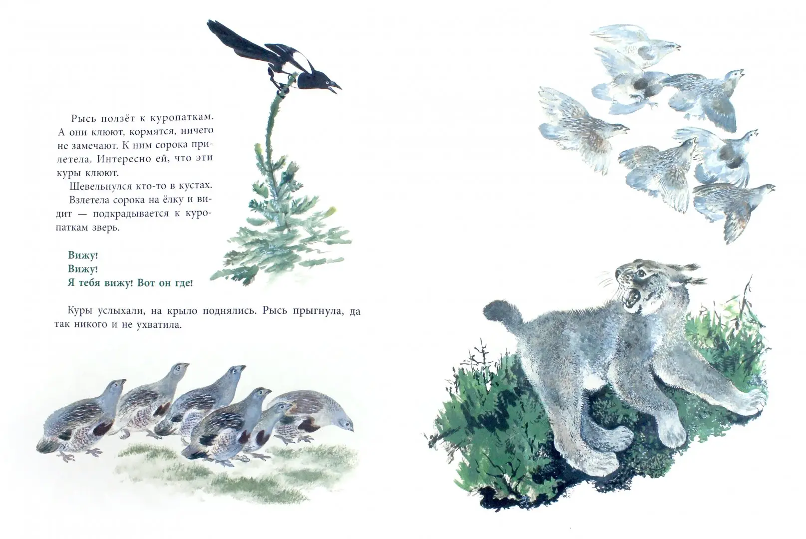 В рассказе "Болтливая сорока" Евгений Чарушин со свойственными ему юмором, мудростью и неизменной любовью показывает, как живёт лес: кто с кем дружит, кто на кого охотится, как животные-родители защищают своих детей. Знаток природы и натуралист с полувековым опытом, он рассказывает детям о животном мире и о том, как всё в нём взаимосвязано.
