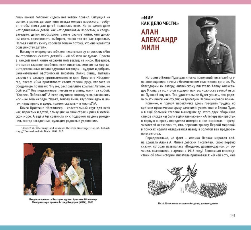 В книге вы найдёте статьи о писателях и иллюстраторах разных стран, чьё творчество вошло в золотой фонд мировой детской книги, и чьи произведения стали любимым чтением для многих поколений российских читателей. Так, раздел литературных биографий "Имена на обложке" включает статьи об Алане А. Милне, Туве Янссон, Памеле Трэверс, Кристине Нёстлингер, Ульфе Старке и др.