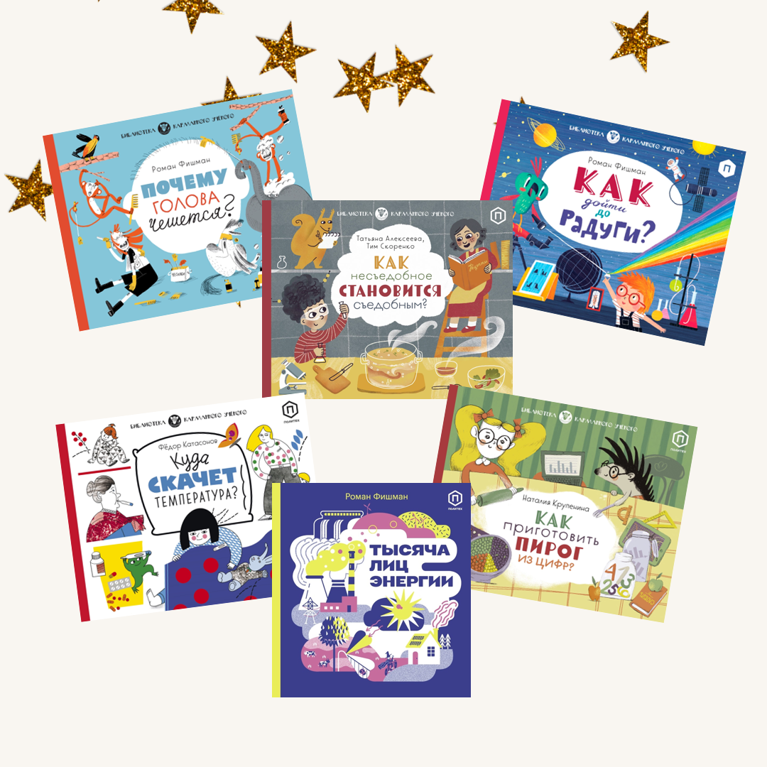 Комплект из шести книг для старших дошкольников/младших школьников со скидкой 25%, которые подробно разбирают различные темы: физику света, терморегуляцию человеческого тела, энергию и др.