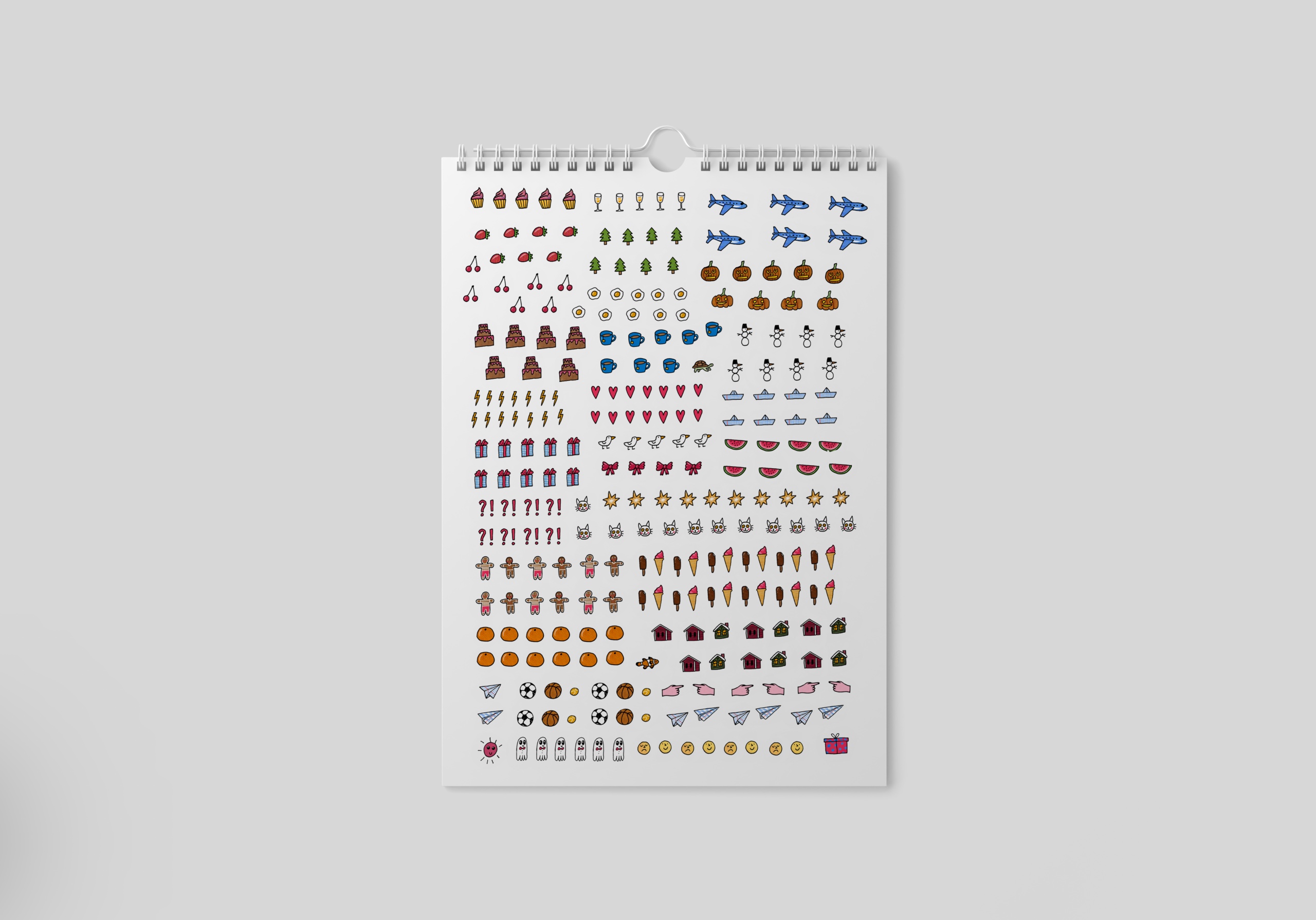 Удобный формат, настроенческая картинка, по которой можно следить за сменой месяцев и 100 стикеров, чтобы выделять ими разные знаменательные даты!