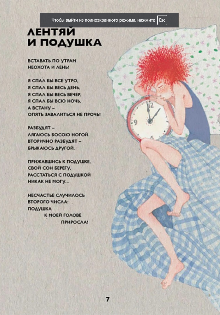 Стихи Владимира Александровича Лифшица (1913-1978) живут в памяти поколений 50-70-х гг. в виде отдельных строк. Далеко не все знают, что он автор всенародно известной песенки "Пять минут" из кинофильма "Карнавальная ночь". И сегодня его стихи хочется выучить, разобрать на строчки, а то и разыграть из них небольшое представление. В сборник «Лентяй с подушкой», помимо одноимённого стихотворения, включены самые известные - «Слон и Зоя», «Медведи и месяц», «Котище», «Тимоша», «Футбольный мяч».