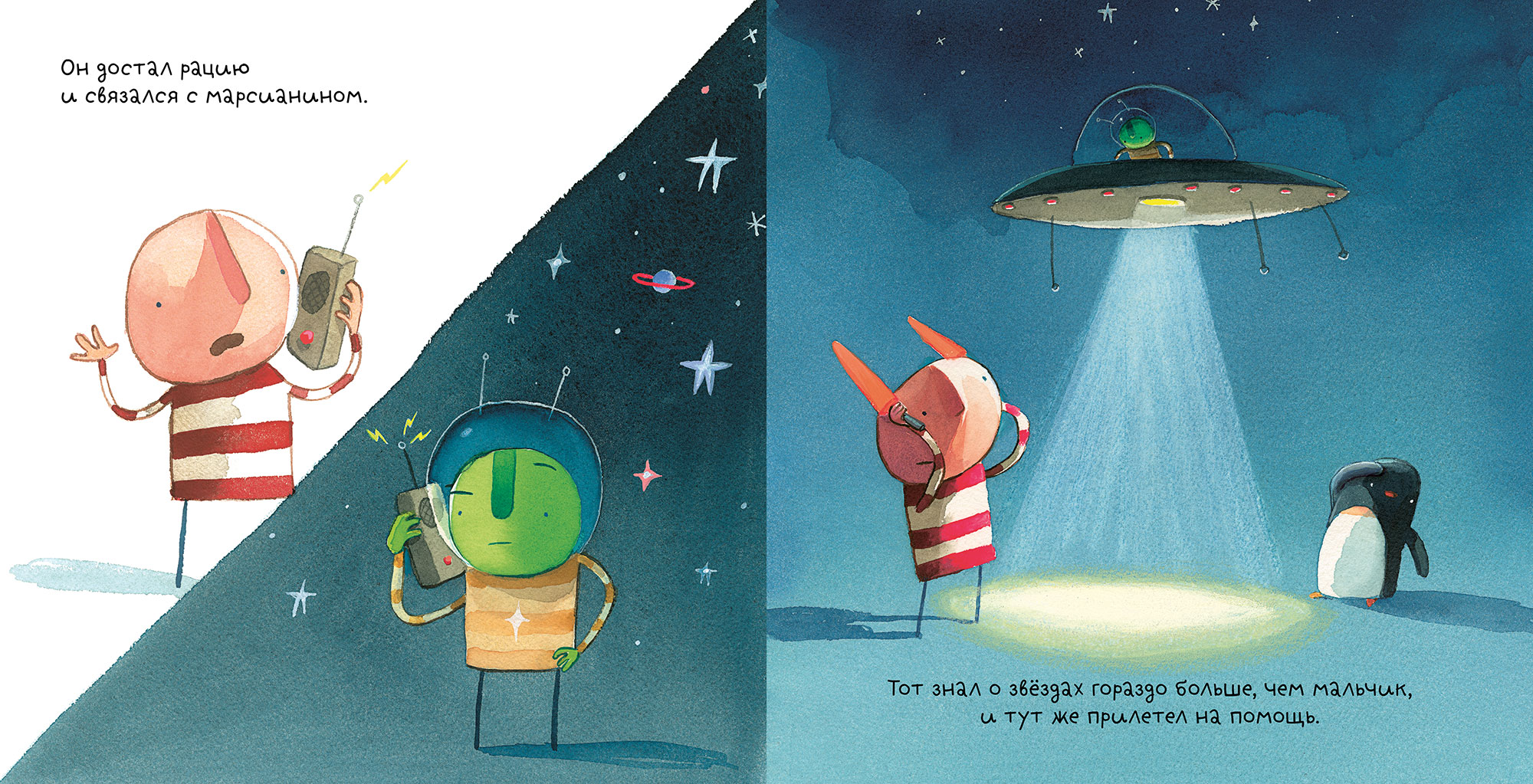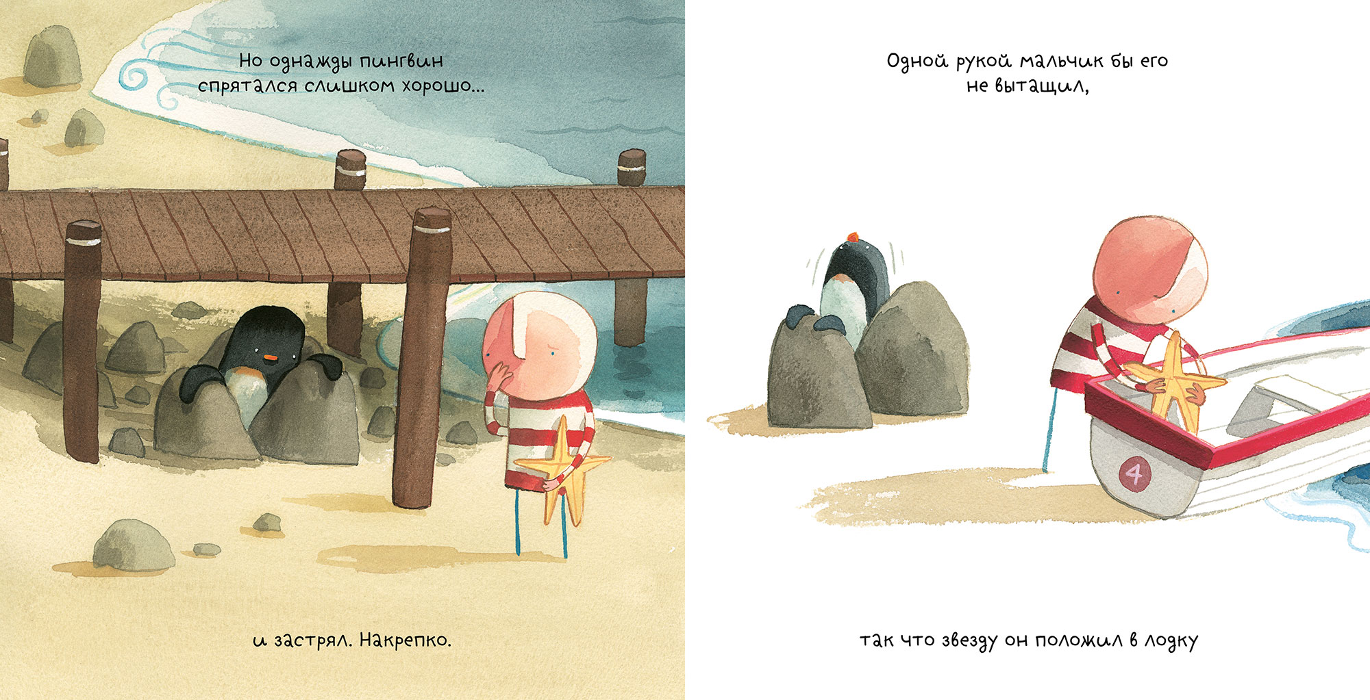 Жил-был мальчик, который часто играл в прятки со своими друзьями — звездой и пингвином.