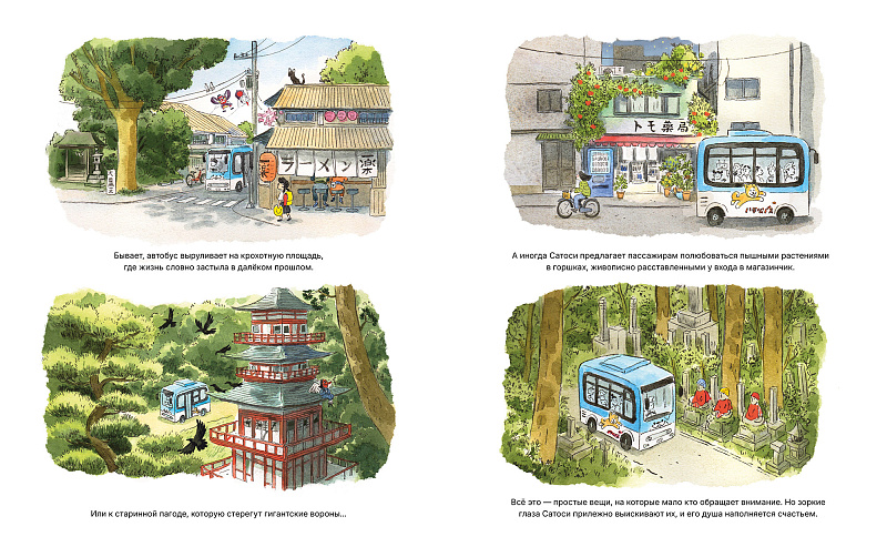 Сатоси живёт в Токио и водит небольшой автобус. Колесить проторённым маршрутом ему скучно, и он частенько заруливает в неприметные переулки. Взорам пассажиров предстают подлинные сокровища, прячущиеся от суеты центральных проспектов. Вот величественный храм посреди живописного парка, вот улочка, украшенная необыкновенными растениями и цветами, а вот дорожка с оригинальными статуями...