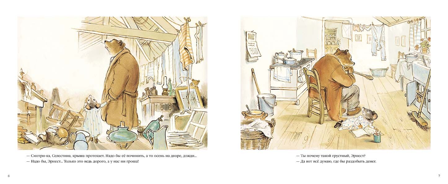 Cерия книжек-картинок о приключениях добродушного медведя по имени Эрнест и его «приёмной дочери», маленькой мышки Селестины принесла бельгийской художнице Габриэль Венсан (1928–2000) мировую известность.