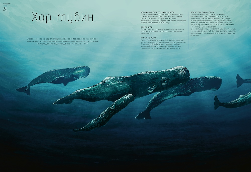 Киты — самые большие млекопитающие и одни из самых загадочных с уществ на планете. Эта книга приглашает читателя в захватывающее путешествие по Ми ровому океану от ледяных вод Арктики до тропических морей. Вы узнаете, какие бывают киты, за чем они поют, как спят, охотятся и воспитывают детёнышей и какую роль играют в экосистеме планеты.