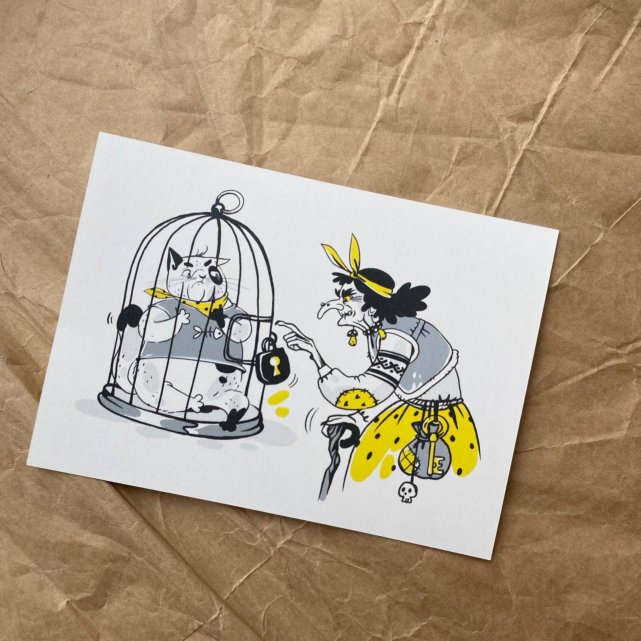 Почтовая открытка с иллюстрацией художницы Екатерины Варжунтович к книге "Кинокухня. История и рецепты большого кино".