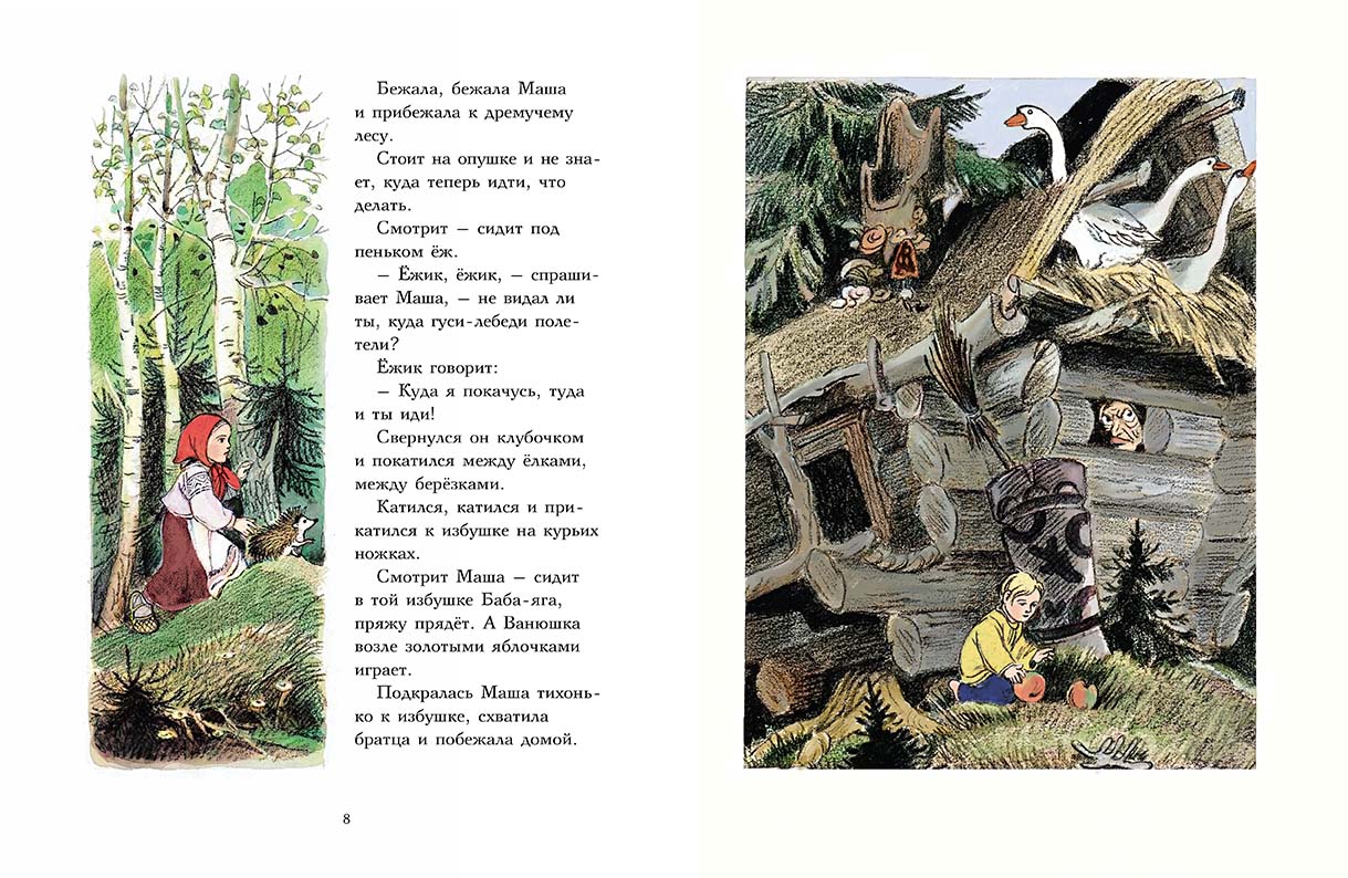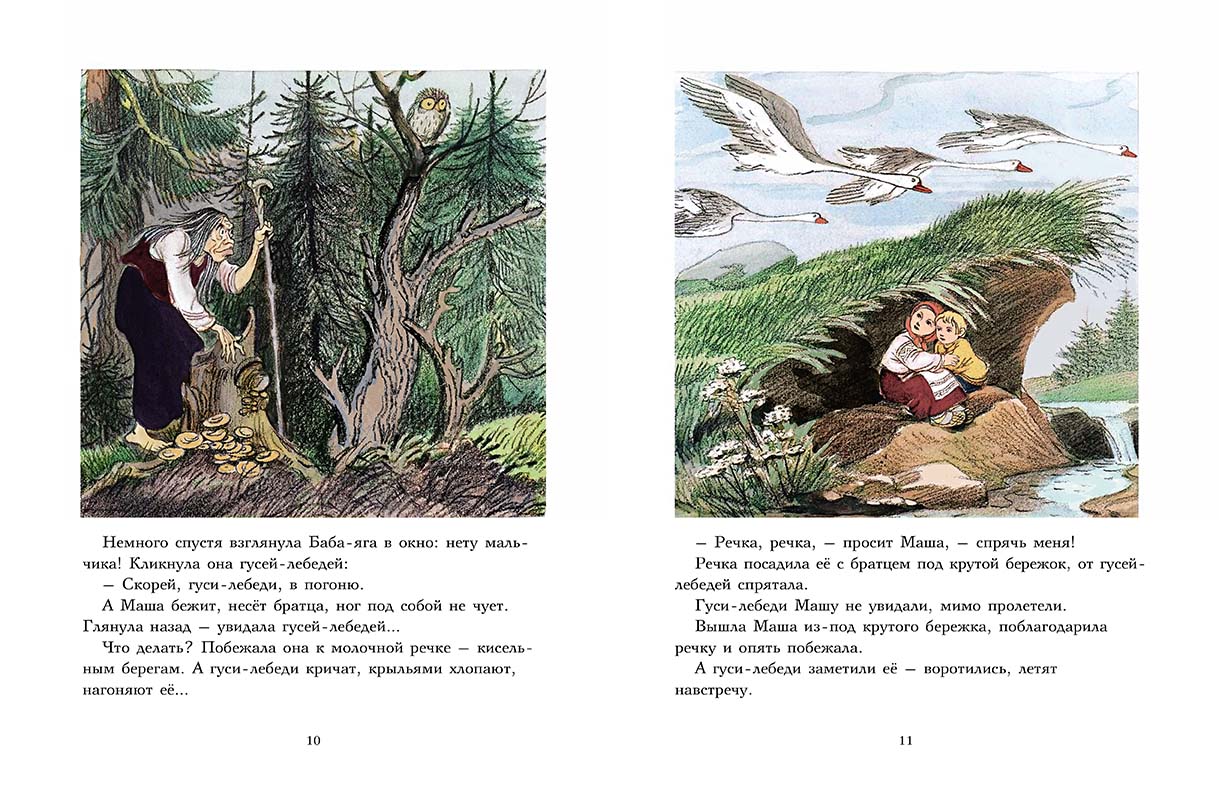 Коварные гуси-лебеди похитили малыша Ванюшу и унесли его к Бабе-яге. В этом виновата старшая сестра Машенька: она заигралась и забыла о братике. Девочка отправляется на поиски Вани и в конце концов вызволяет его от Бабы-яги, несмотря на сложные поиски и полный опасностей побег.