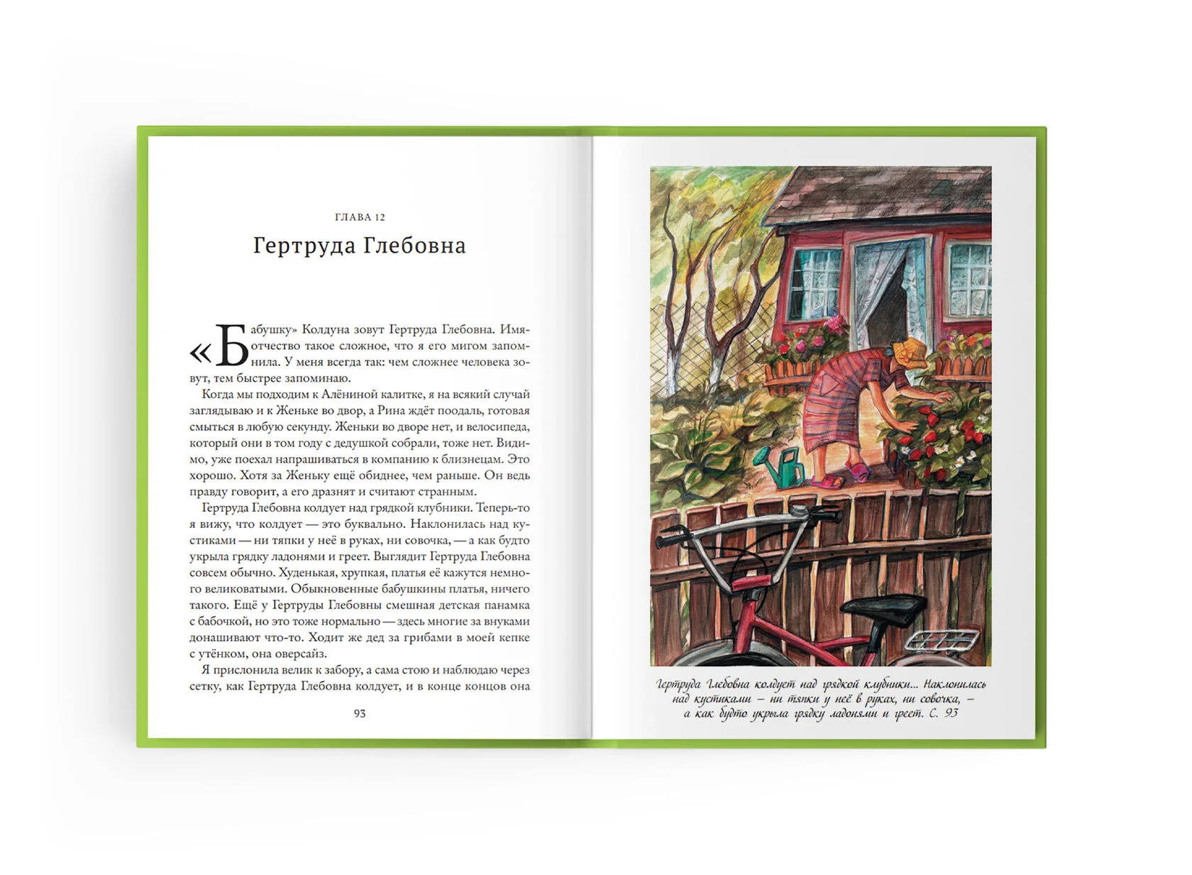 На даче Ксюша знает всех — близнецов, гоняющих на великах, ленивую Алёну, модную Дашу и таинственного Женьку-колдуна, от которого бегают другие ребята... Но эту девочку в нарядном платье с оборками и в лаковых босоножках она видит впервые! И ведёт незнакомка себя как-то подозрительно... Оказывается, эта нездешняя Рина ищет очень важную дверь, чтобы попасть домой, в свой мир, — очень похожий на наш, но совсем другой. Летние игры и походы в гости на дачи превращаются для Ксюши и Рины в настоящее приключение, ведь таинственная дверь в другой мир может быть где угодно!