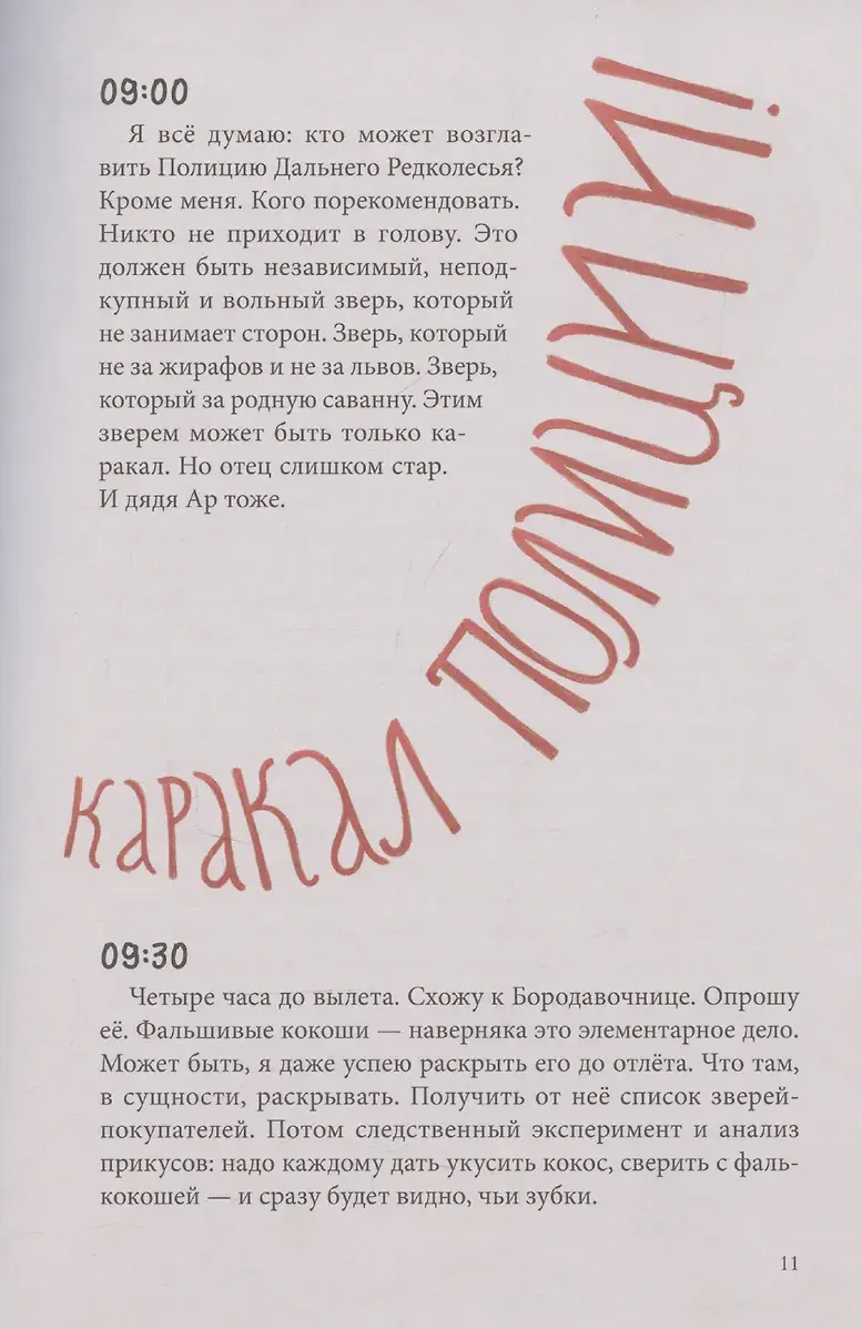 Местная жительница каракал Каралина могла бы улететь в благополучный Дальний Лес с «Аистиным клином», ведь там её ждёт не только возлюбленный Барсукот, но и работа в полиции. Но если она станет барсуком полиции там, кто же будет каракалом полиции здесь? Кто добьётся справедливости для копытных, пернатых, мангустовых, членистоногих и прочих бесправных обитателей Редколесья? Кто раскроет сложное дело? Кто поймёт, что преступник не только подделывает кокоши, но и совершает куда более зверские преступления? Кто запишет ответы на проклятые вопросы в дневник?