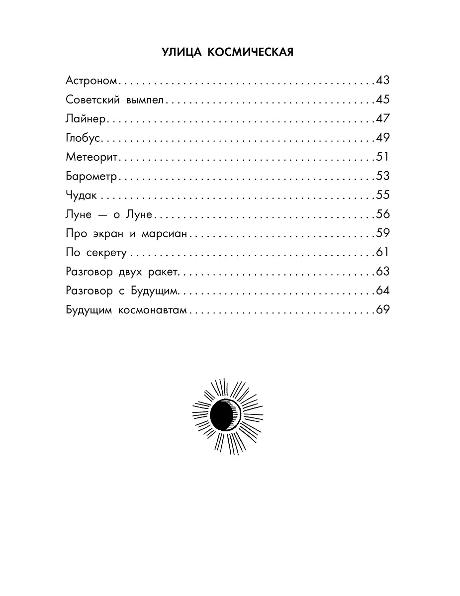 В книгу вошло два цикла стихов Генриха Сапгира: "Звёздная карусель" и "Улица Космическая".