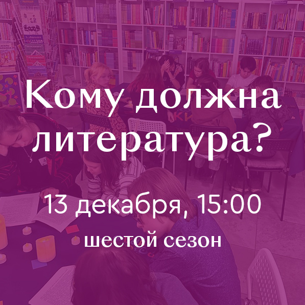 13 декабря, в 15:00 приглашаем подростков от 12 до 17 лет на встречи клуба «Кому должна литература?», в котором мы ищем ответ на этот вопрос разнообразными способами: читаем чужие тексты и сочиняем свои, устраиваем литературные скачки и кафе-мидраш. Ну и обсуждаем книжки, конечно.